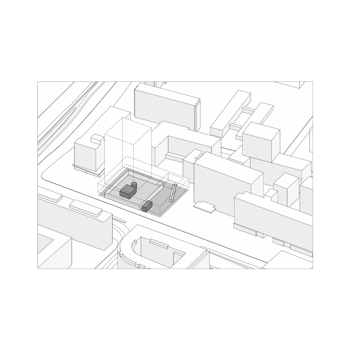 Berlin, Petriplatz. Under the ground level the city hides its past. The ruins of the Petrikirche, from its first XIVth century version to the latest from XIXth. An urban void to let this memory become clear and open. A museum to host the findings and the new church to preserve the sacred character of the place.